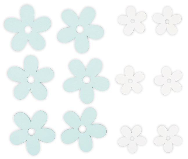 - Kytky dřevěné modré a bílé, mix velikostí 12 ks 7532