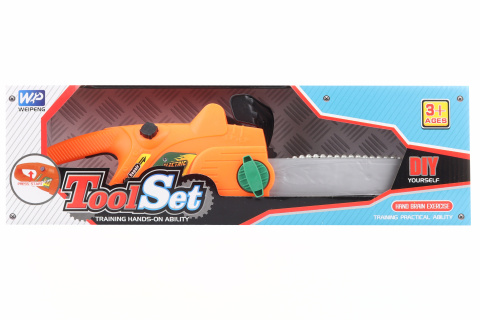Plastová motorová pila na baterie. Pila má funkce a vydává zvuky jako prává motorová pila. Napájení 3x AAA baterie - nejsou součástí. Rozměry pily cca 40 x 11 cm. Rozměry balení cca 41,5 x 12,5 x 15,5 cm. Věk 3+