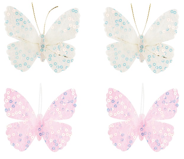 Motýlek s flitry a peřím, s lepíkem 6 cm 17144Skladem50 Kč/ ks41 Kč bez DPH