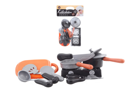 Sada nádobí. Materiál plast. Sada obsahuje vařič, hrnec a pánev s poklicemi, pekáč , naběračku, obracečku a příbor. Baleno v sáčku. Rozměry balení cca 20x31x4 cm. Věk 3+