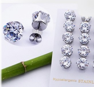 - Ocelové náušnice kamínek, transparentní 6mm (2ks - 1pár)