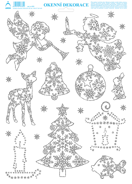 - Okenní dekorace Andílek s trubkou - tisk stříbrnými glitry 25x35cm