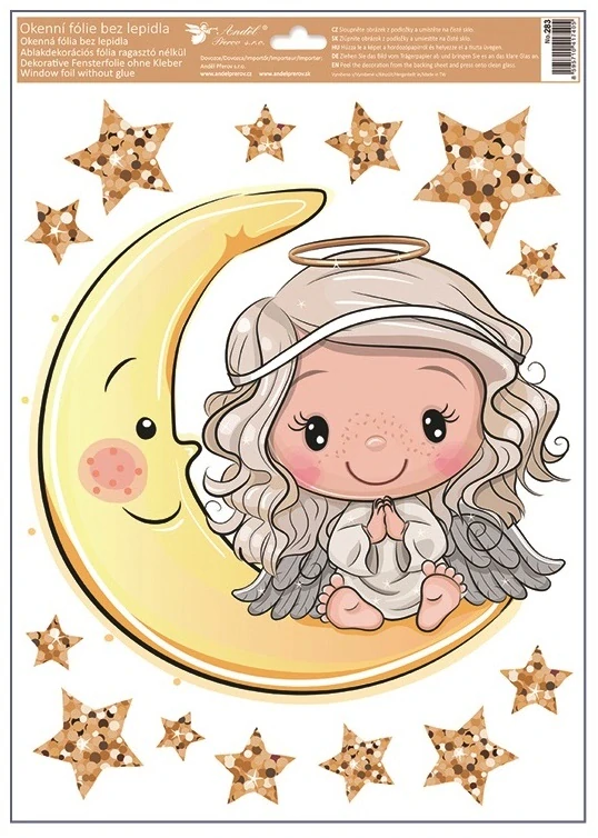 4. Okenní fólie andílci s glitry na obláčku 30 x 42 cm