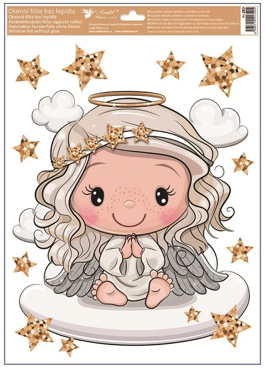 Okenní fólie andílci s glitry na obláčku 30 x 42 cmSkladem45 Kč/ ks37 Kč bez DPH
