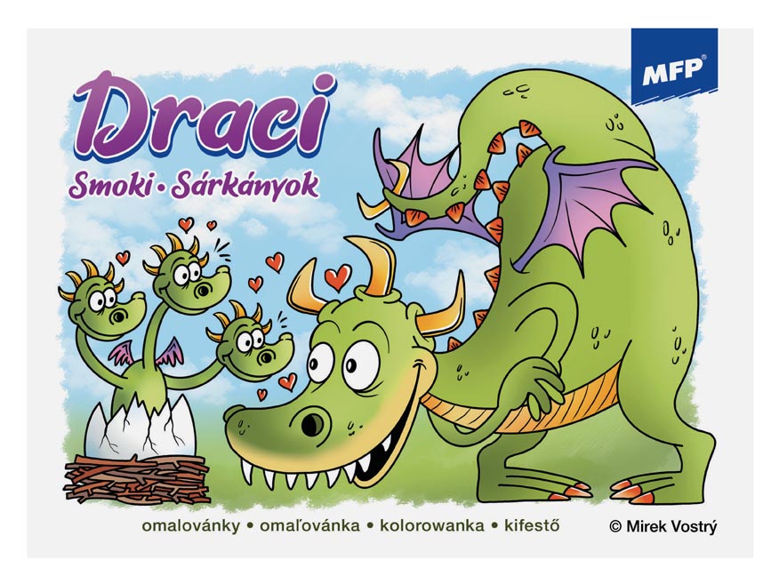 Dětské omalovánky MFP - Draci. Udělejte si pohodové odpoledne s dětmi a vybarvěte si obrázek. Tyto omalovánky jsou jednoduché s velkými obrázky, tudíž vhodné i pro ty nejmenší děti. Vybarvování obrázků pomůže rozvíjet řadu schopností a dovedností, zejména má velký vliv na jemnou motoriku ruky. Zakoupit si u náš můžete i kvalitní barevné pastelky.