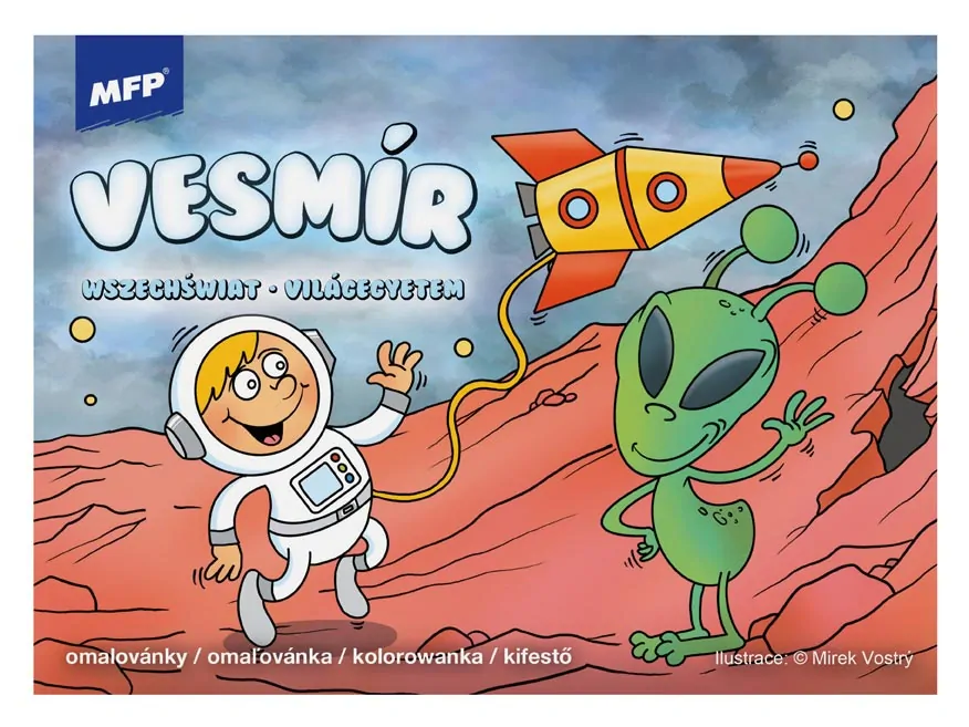 Dětské omalovánky MFP - Vesmír. Udělejte si pohodové odpoledne s dětmi a vybarvěte si obrázek. Tyto omalovánky jsou jednoduché s velkými obrázky, tudíž vhodné i pro ty nejmenší děti. Vybarvování obrázků pomůže rozvíjet řadu schopností a dovedností, zejména má velký vliv na jemnou motoriku ruky. Zakoupit si u náš můžete i kvalitní barevné pastelky.