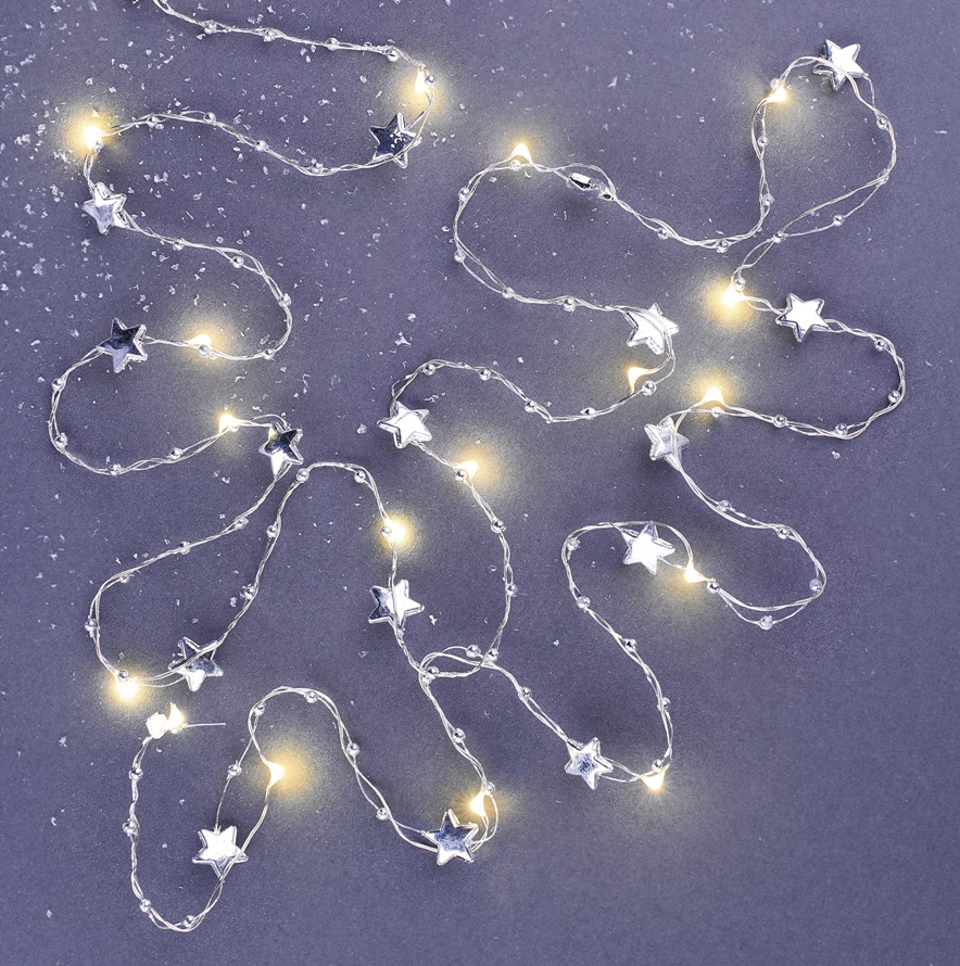 Osvětlení girlanda hvězdičky stříbrné 1,9 m, teplá bílá 20 LEDSkladem115 Kč/ ks95 Kč bez DPH
