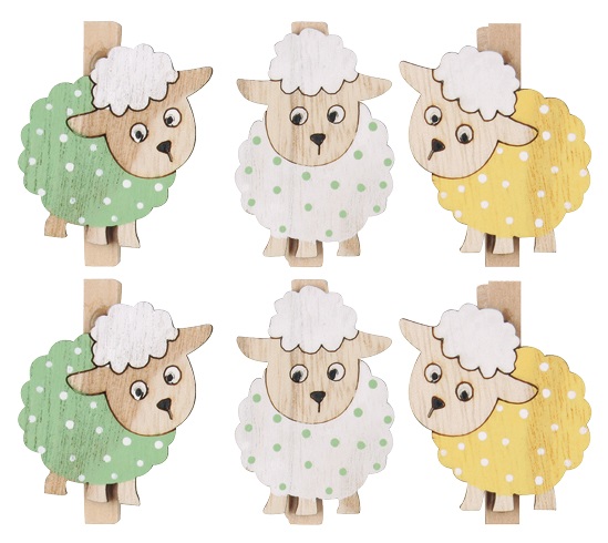Ovečky dřevěné 3 × 5 × 0,3 cm, na kolíčku, 6 ks 7533Skladem60 Kč/ ks50 Kč bez DPH