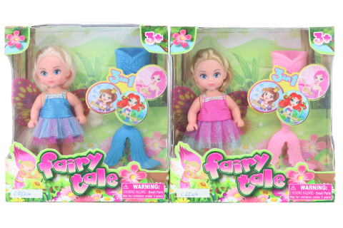 Panenka s doplňky 3v1. Panenku lze proměnit na mořskou pannu, panenku s křídly nebo na princeznu. Rozměry panenky cca 12 x 5 cm. Rozměry balení cca 15 x 16 x 5 cm. Věk 3+