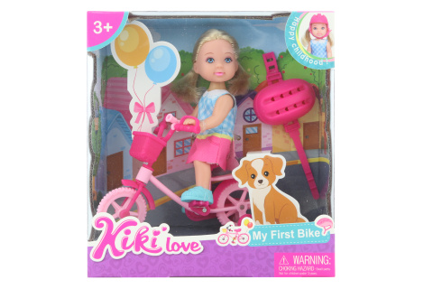 Panenka s kolem a helmou. Rozměry kola cca 10 x 8 cm, rozměry panenky cca 12 x 5 cm. Rozměry balení cca 15 x 16,5 x 6 cm. Věk 3+