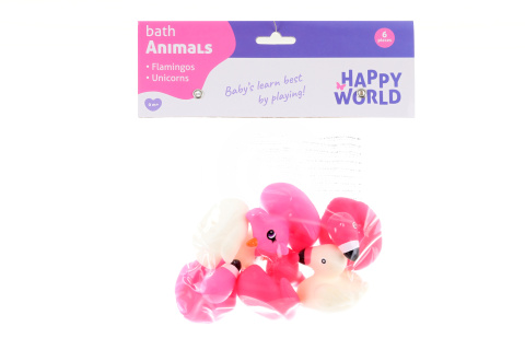 Gumová zvířátka-plameňáci a jedorožci do vody pro nejmenší děti. Balení obsahuje 6 kusů zvířátek o velikosti cca 6 cm. Baleno v sáčku. Rozměry balení cca 21x20x5 cm. Věk 0+