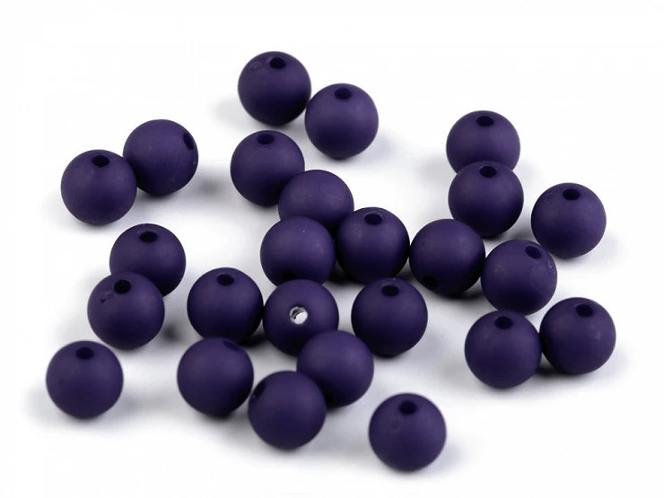 Plastové korálky s matnou povrchovou úpravou. Jsou velmi příjemné na dotek.
