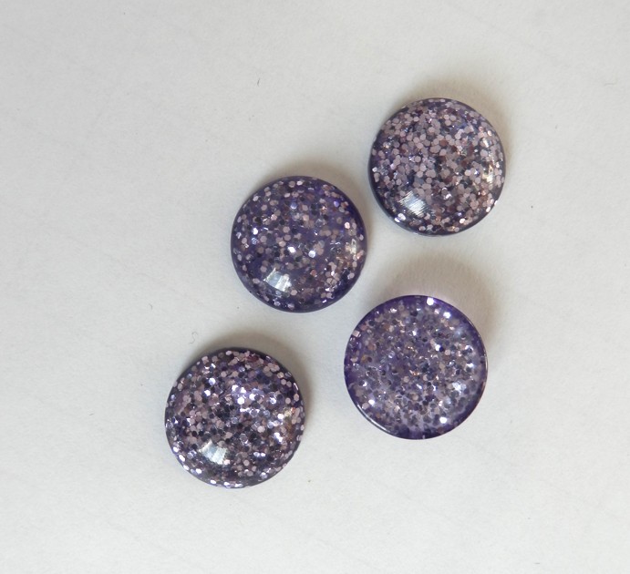 Kabošon s třpytivým efektem. Spodní část má plošku k nalepení.
