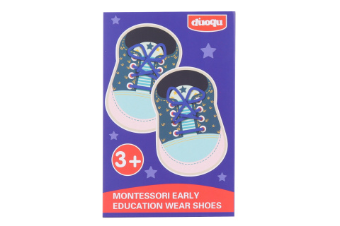 Provlékání dřevěných botiček. Skvělá hra pro trénování zručnosti. Rozměry jedné boty cca 9 x 14 cm. Balení obsahuje 2 boty a 2 tkaničky. Rozměry balení cca 10,5 x 16,5 x 2 cm. Věk 3+