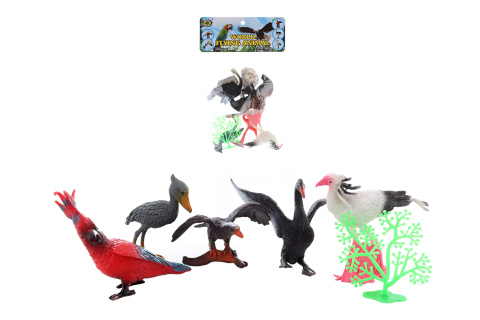 Plastový ptáci v sáčku. Balení obsahuje 5 ptáků - velikost ptáka cca 9 cm, plastový strom a 2x plastový kámen. Rozměr balení cca 27 x 17,5 cm. Věk 3+