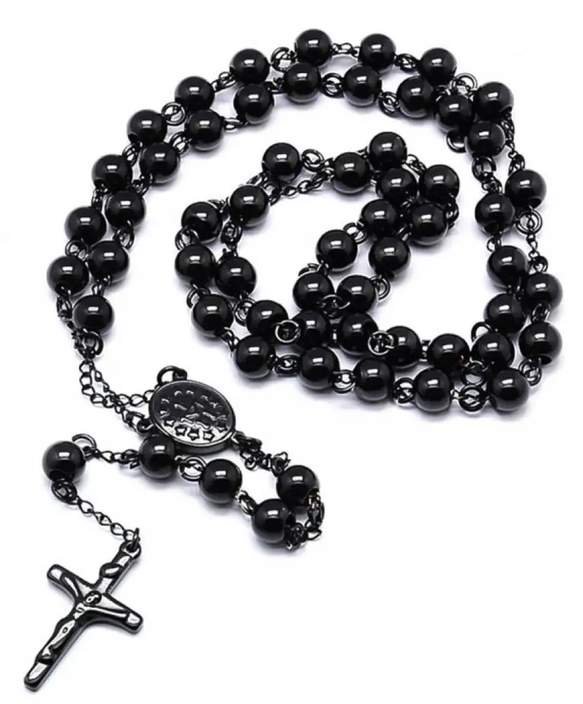 Tradiční křesťanský růženec z oceli černý