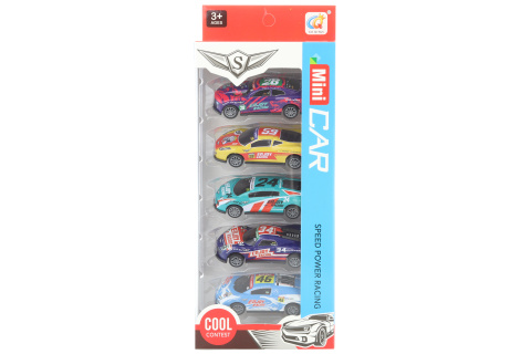 Sada 5 kusů plastových aut o velikosti cca 7,5 x 3,5 cm. Rozměry balení cca 11 x 27,5 x 4,5 cm. Věk 3+
