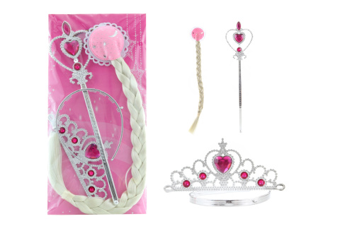 Sada krásy s copem obsahuje korunku, žezlo a blonďatý cop. Rozměr balení cca 17 x 35 x 3 cm. Věk 3+