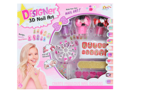 Sada na úpravu nehtů obsahuje 3 laky na nehty, 10 umělých nehtů, samolepky na nehty, pilník a další doplňky. Rozměr balení cca 24 x 27 x 4 cm. Věk 6+