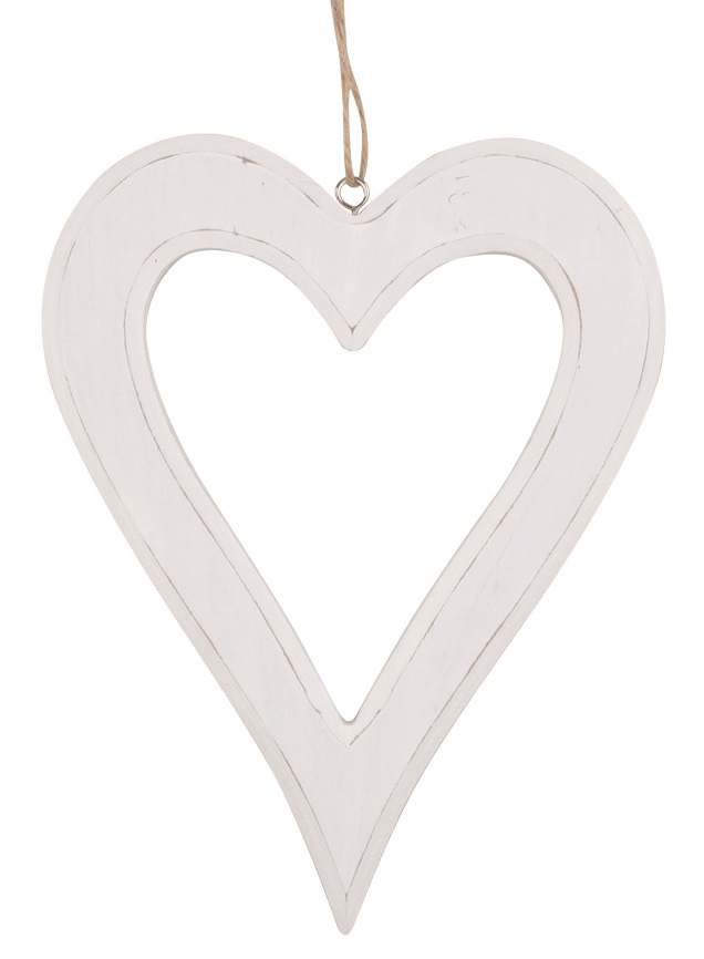 - Srdíčko dřevěné bílé na zavěšení 15 x 19,5 x 1 cm 7642