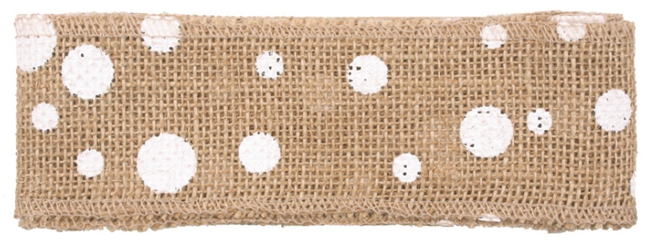 Stuha jutová s bílými kolečky šířka 6 cm, 2 m 2813