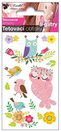 - Tetovací obtisky s glitry Sovy 10,5 x 6 cm 1100