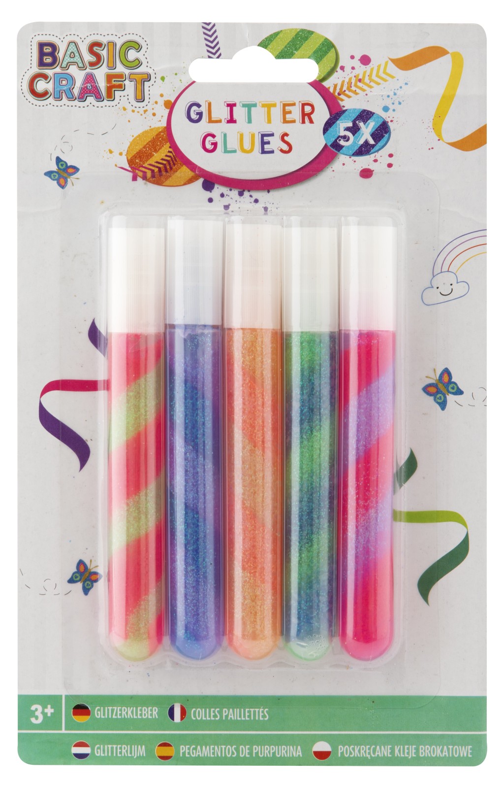 Třpytkové dvoubarevné lepidlo – 5 ks v balení – 8 ml. Lepidla jsou dvoubarevná, což přináší zajímavý zdobící efekt. Lepidla jsou ideální pro zdobení příníček, dopisů nebo kreseb.