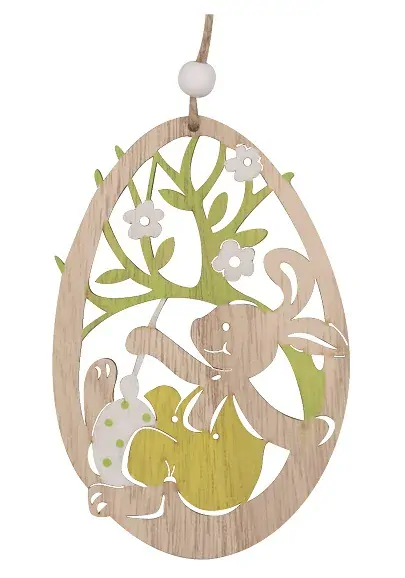 Vajíčko dřevěné se zajíčkem na zavěšení 11 cm 634