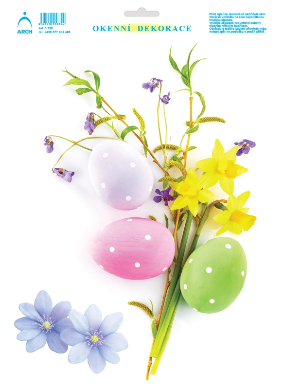 - Velikonoční adhezní nálepky 33x24 cm / Jarní kvítí s kraslicemi