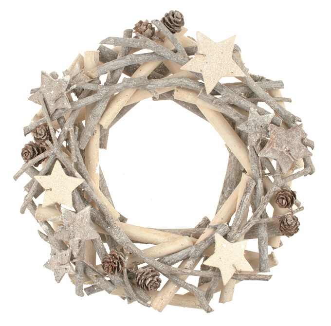 Věnec bílošedý dřevěný z větviček 22 cmSkladem190 Kč/ ks157 Kč bez DPH