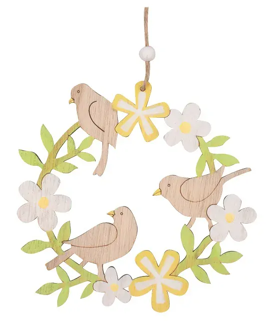 - Věnec dřevěný s ptáčky na zavěšení 15 cm 7628