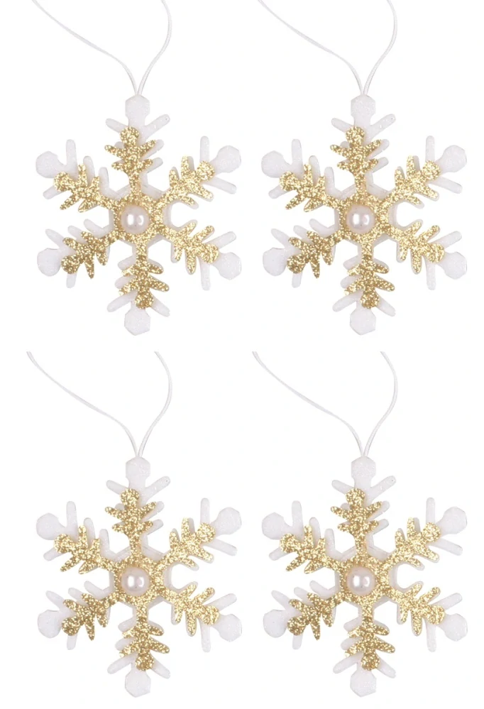 Vločka bílozlatá 4 ks v sáčku, 6 cm 3277
