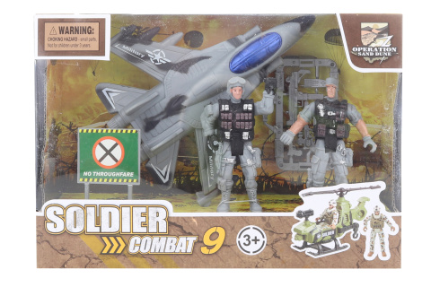 Vojenská sada. Balení obsahuje dva vojáčky, stíhačku a další doplňky. Rozměr balení 25,5 x 17,5 x 9 cm. Věk 3+
