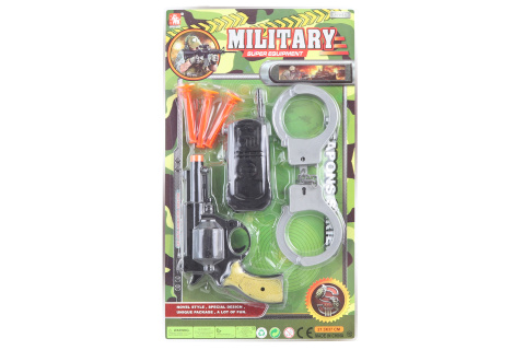 Vojenská sada obsahuje revolver, tři náboje s přísavkou, vysílačku a pouta. Rozměr balení cca 37 x 21,5 x 3,5 cm. Věk 3+